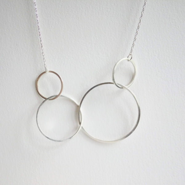 Add a touch of difference to your jewelry collection with our Bubbles necklace. This fun yet elegant necklace is made of .925 sterling silver and features four interconnecting loops suspended from a sparkly sterling silver chain. The unique design of this necklace makes it a standout piece that can take you from everyday wear to evening events with ease.