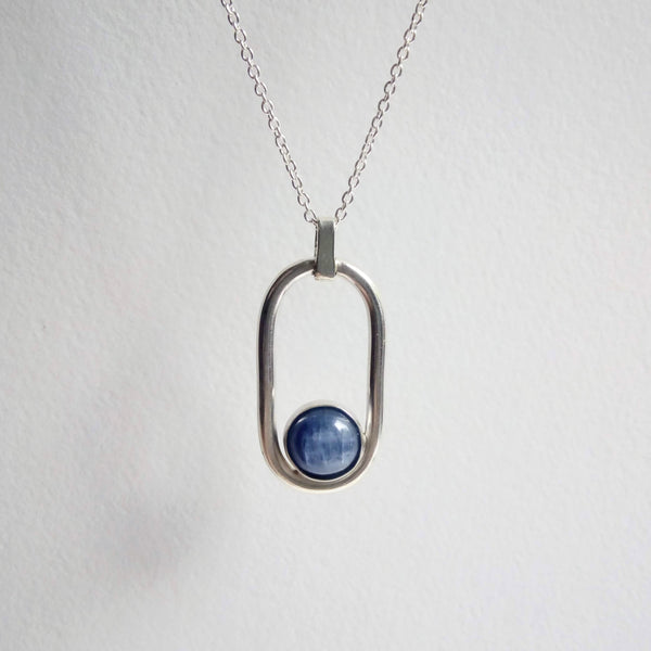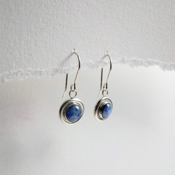 Crafted by hand using the highest quality .925 sterling silver, these earrings are reminiscent of mid-century modern style with smooth curves and lovely rounded blue Kyanite stones.