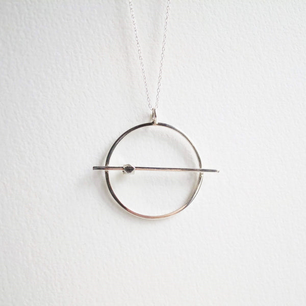 The orbit pendant is the centerpiece of this necklace and it has a simple and sophisticated design like a moon orbiting a planet. The necklace comes with a chain that can be adjusted to fit the wearer.